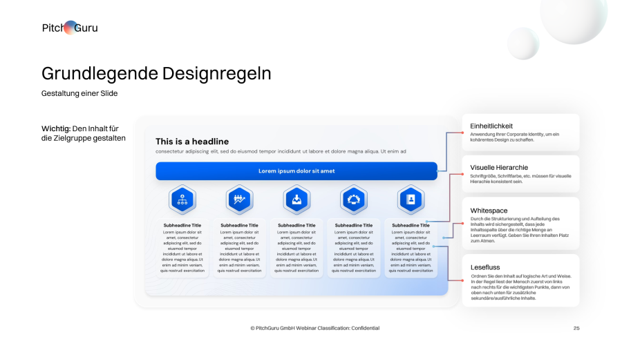 Learn how concise visual elements and a clear design strategy highlight your core messages while promoting brand recognition. We show you how to effectively communicate complex data and processes through strategic design decisions and anchor them permanently in the minds of your audience.