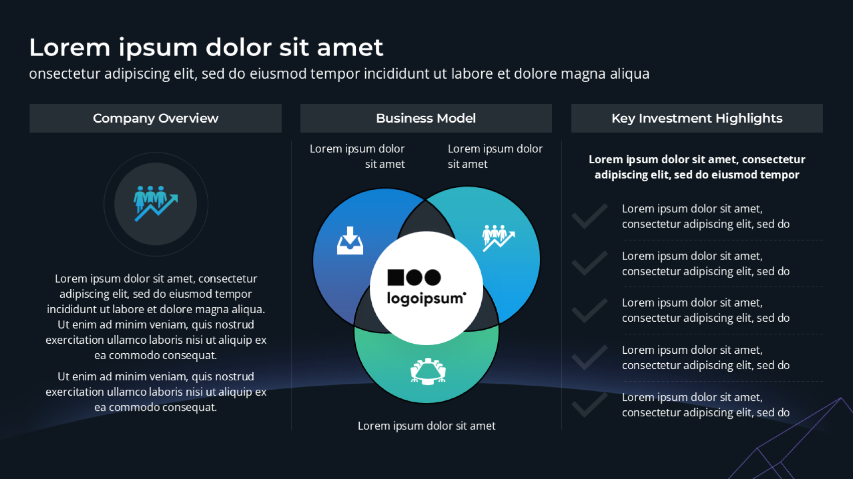 Ob Teaser, Investment Memorandum oder vollständiges Pitchbook: Wir setzen typische IB-Inhalte in investorengerechte Slides um. Sie liefern Analyse und Story – wir sorgen für Struktur, Visualisierung und sauberes Finishing.