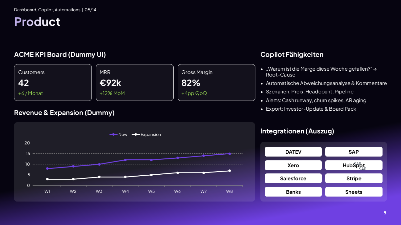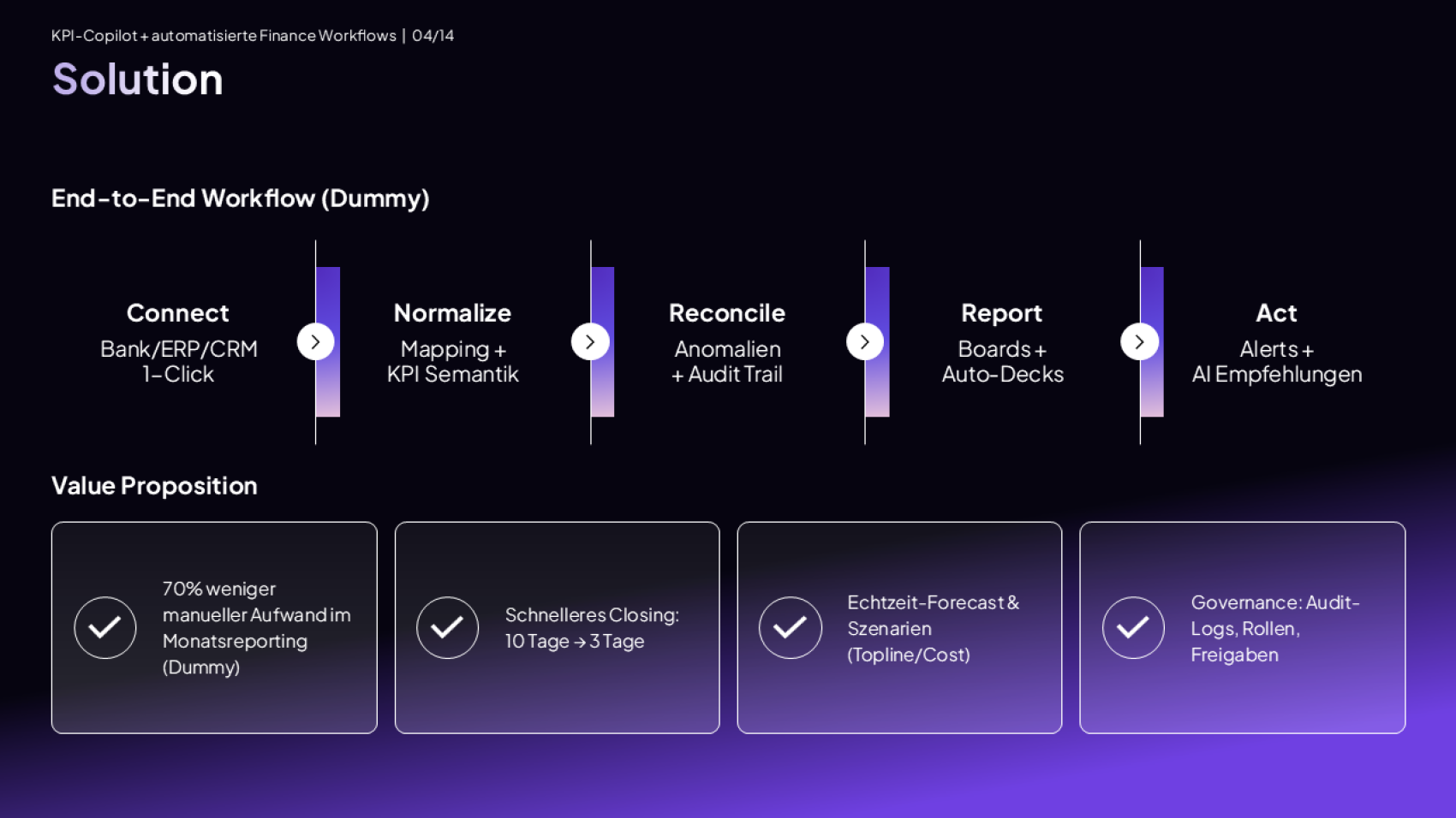 Wir designen Pitch Decks, Board Reports, Demo- und Sales-Slides für Startups & Tech Companies – schnell, konsistent, editierbar. Von Seed bis IPO.